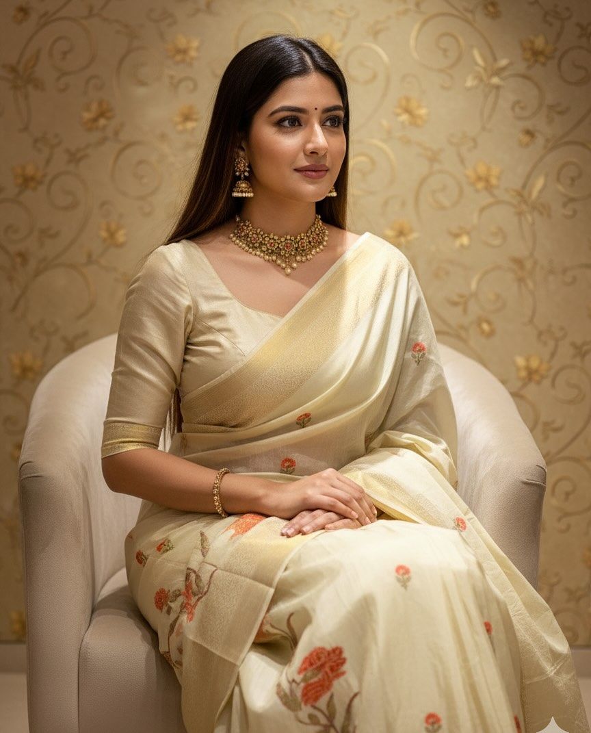 Styling Tip: Choose embroidery or zari borders for a regal touch that pairs beautifully with gold jewelry.