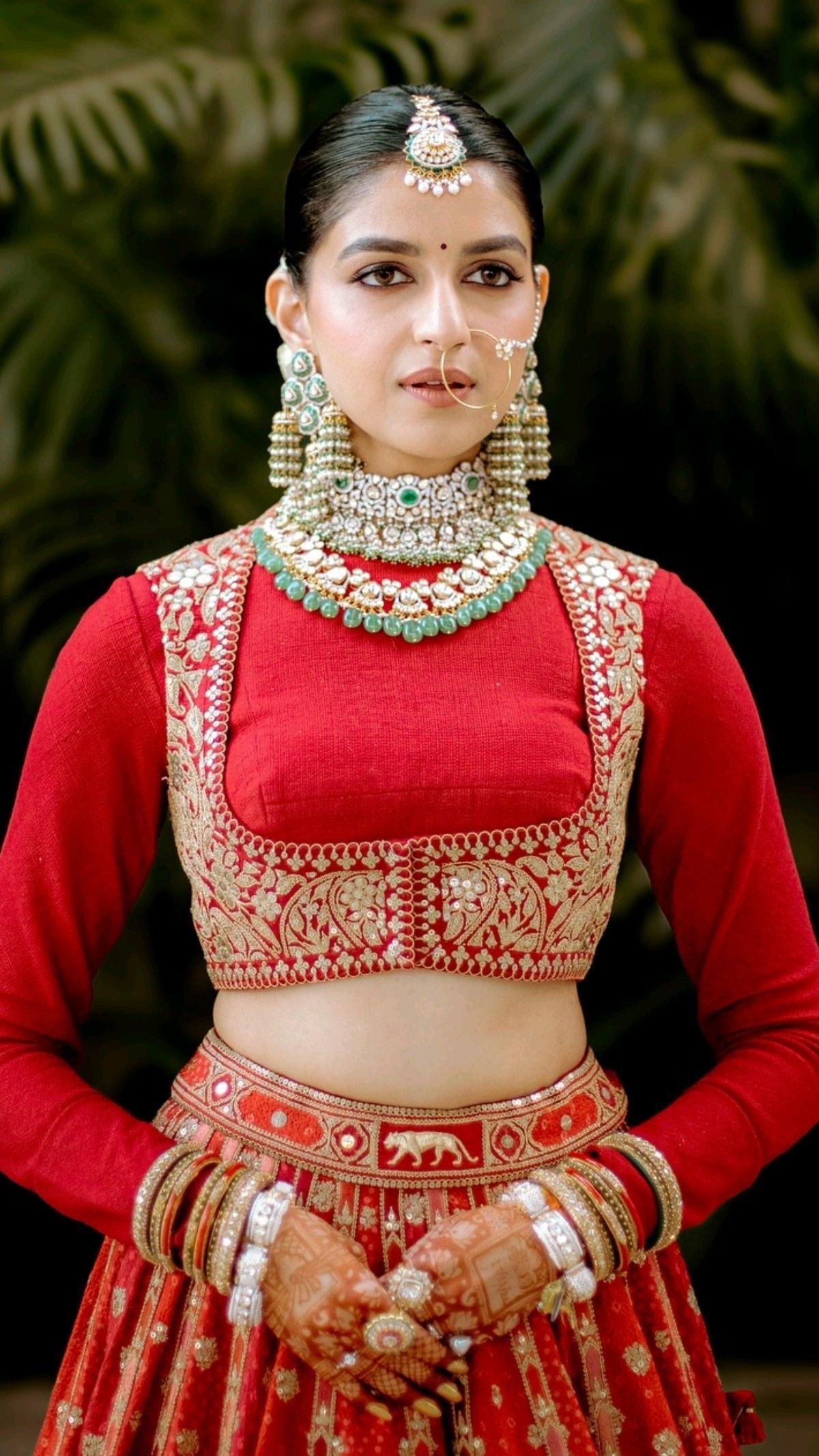 Styling Tip: Coordinate with Kundan jewelry for a perfect traditional bridal appearance.
