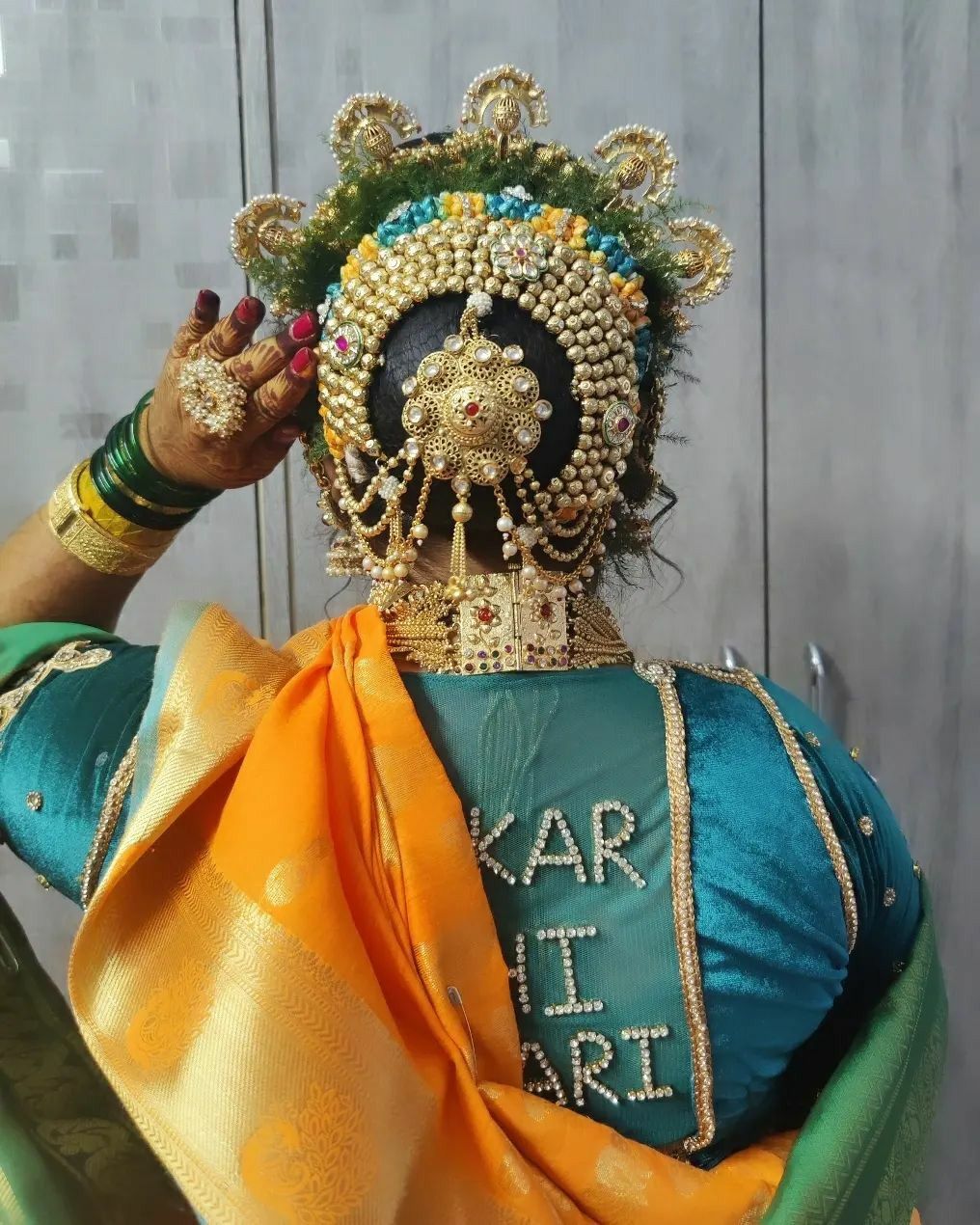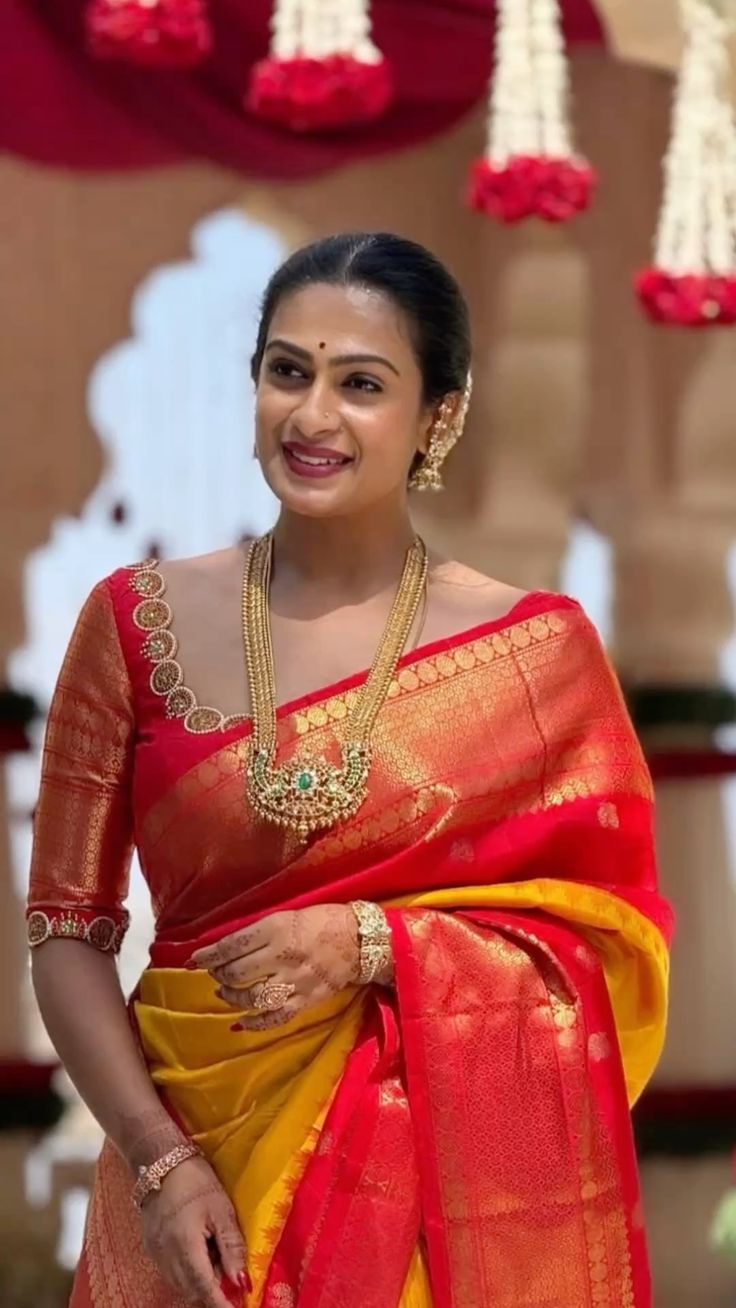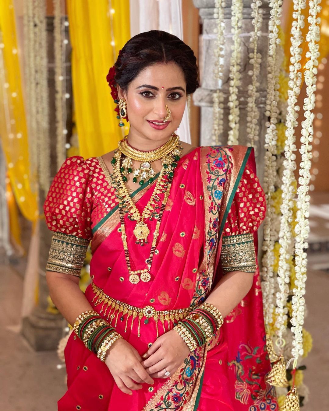 If you have broad shoulders, go for V-neck or deep neck designs. For petite brides, boat necks and puff sleeves look great. Always balance your blouse pattern with your saree drape.