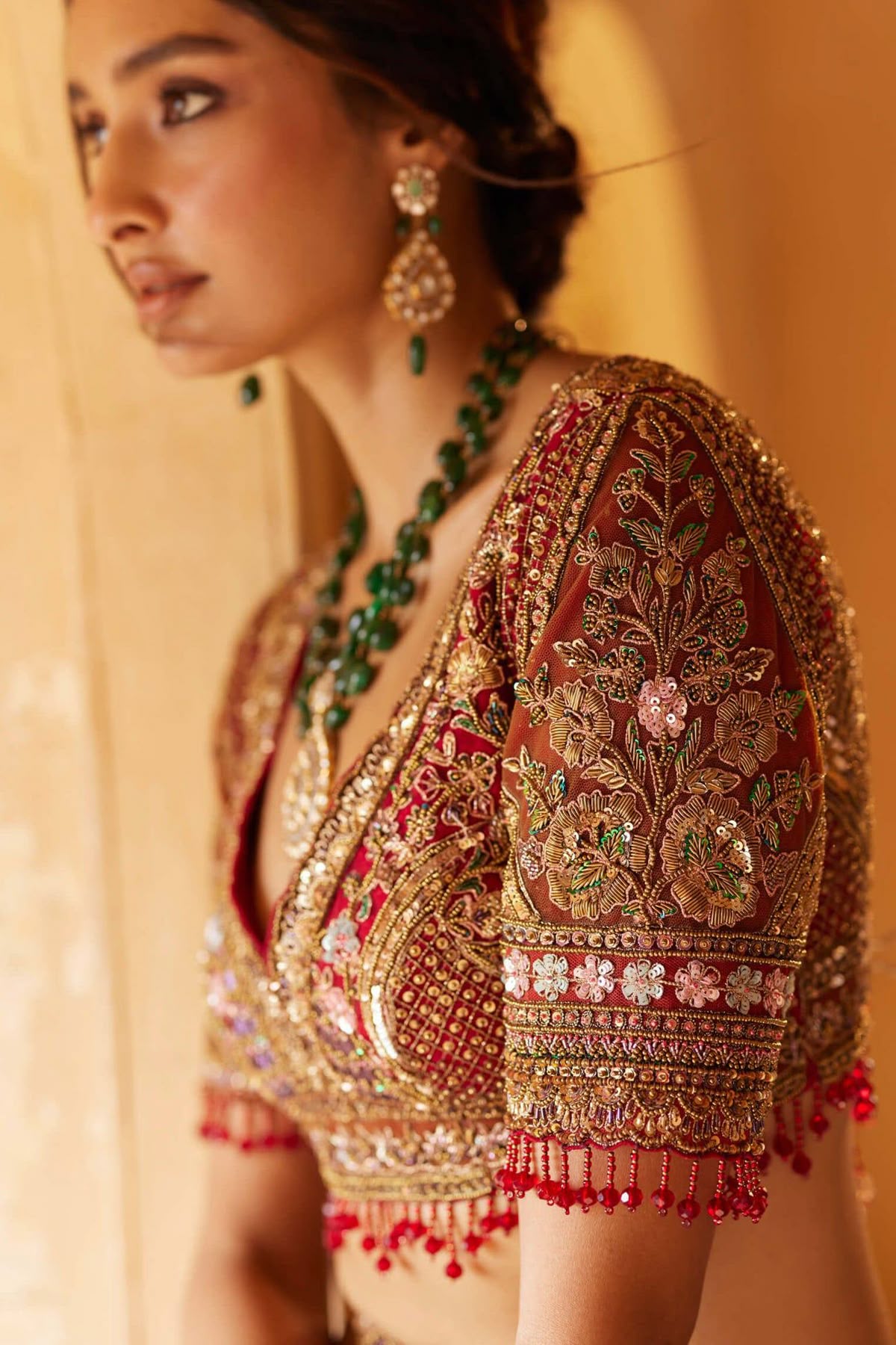 Styling Tip: Pair it with a lightweight georgette or net saree for a romantic and dreamy bridal look.