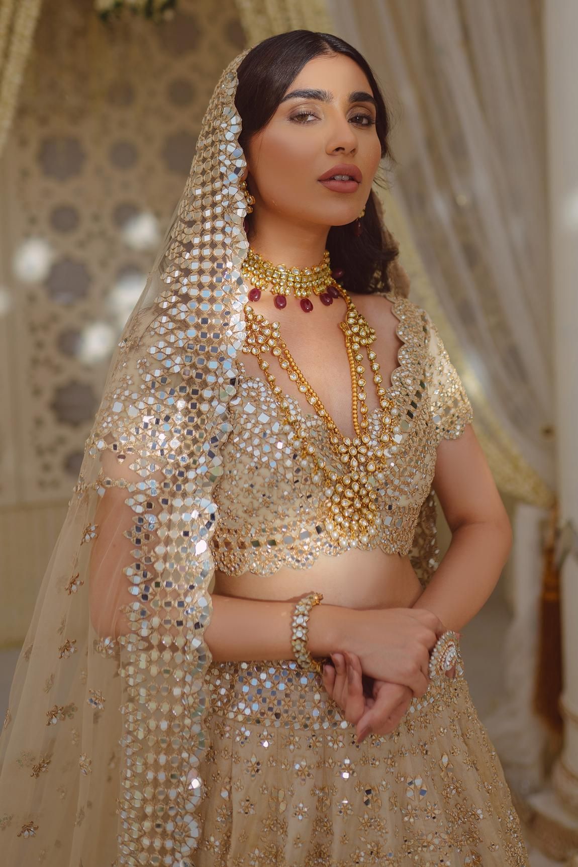 Styling Tip: Pair it with heavy gold jewelry to complete your regal bridal look.