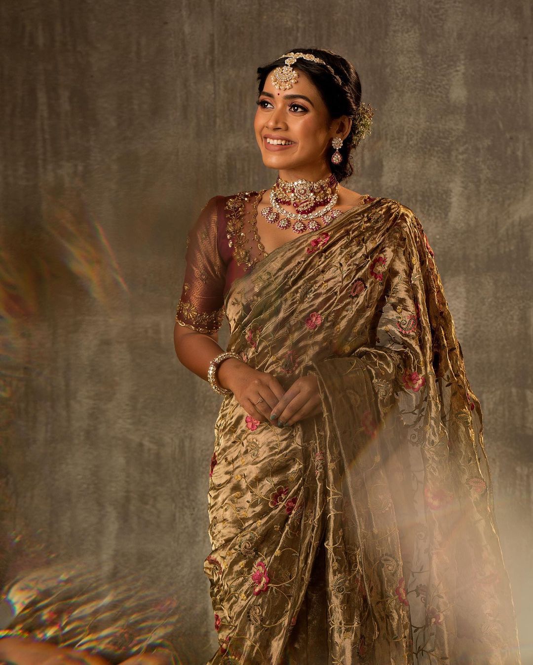 Styling Tip: Try puff sleeves with gold thread embroidery for a royal South Indian bridal look.